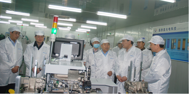3月17日,泰安市委常委、副市長(zhǎng)展寶衛(wèi)同志來(lái)集團(tuán)公司晶泰星光電科技調(diào)研工作,新泰市委副書(shū)記、市長(zhǎng)劉欽海,市委常委、副市長(zhǎng)劉玉等陪同。圖為在晶泰星車(chē)間參觀。