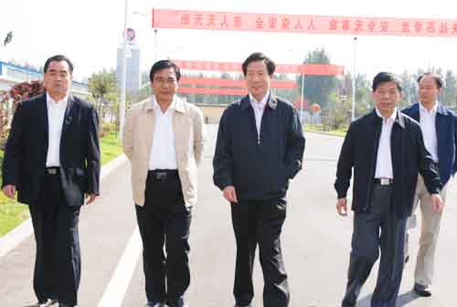齊主任一行在集團(tuán)公司大門口下車后,在公董事長(zhǎng)、李總經(jīng)理陪同下,參觀集團(tuán)公司工業(yè)廣場(chǎng)。
